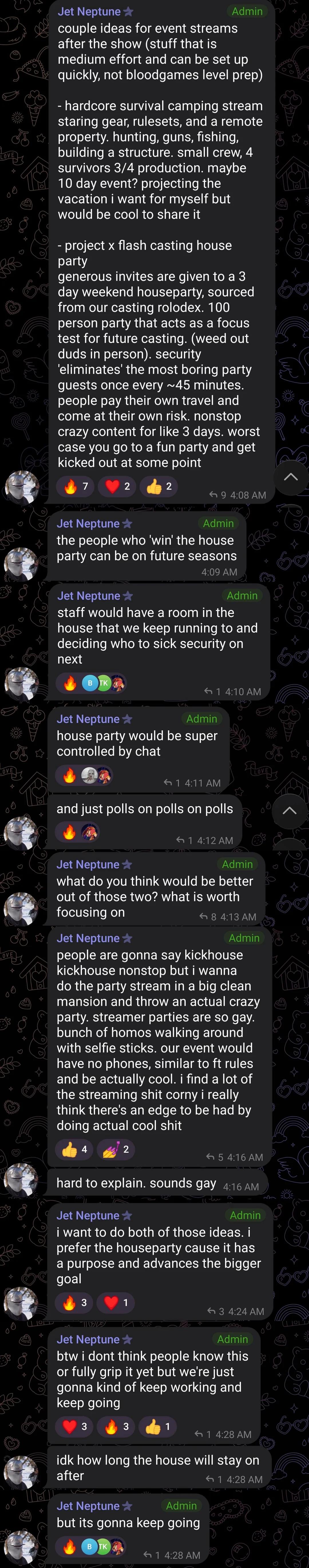 fishtank preproduction is the right mix of high effort and scuffed. most successful people would just delegate roles. imagine how much bad it would be if bam was in charge.
