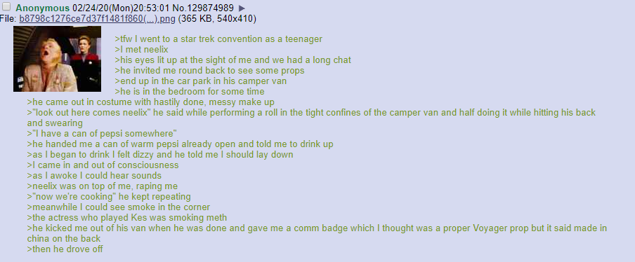 >>219771311>Kes gets booted out of the ship for being a fire hazard>only Delta Quadrant alien who makes it to the Federation is Icheb>gets brutally murdered by Kurtzman/Stewart Trek