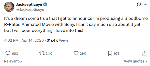 >>219755225rights for Bloodborne are in Snoy's hands, sequel without Babazaki is DOA and any sort of remake is not possible when Bluepoint is gone also their Demon's Souls "remake" sucks ass