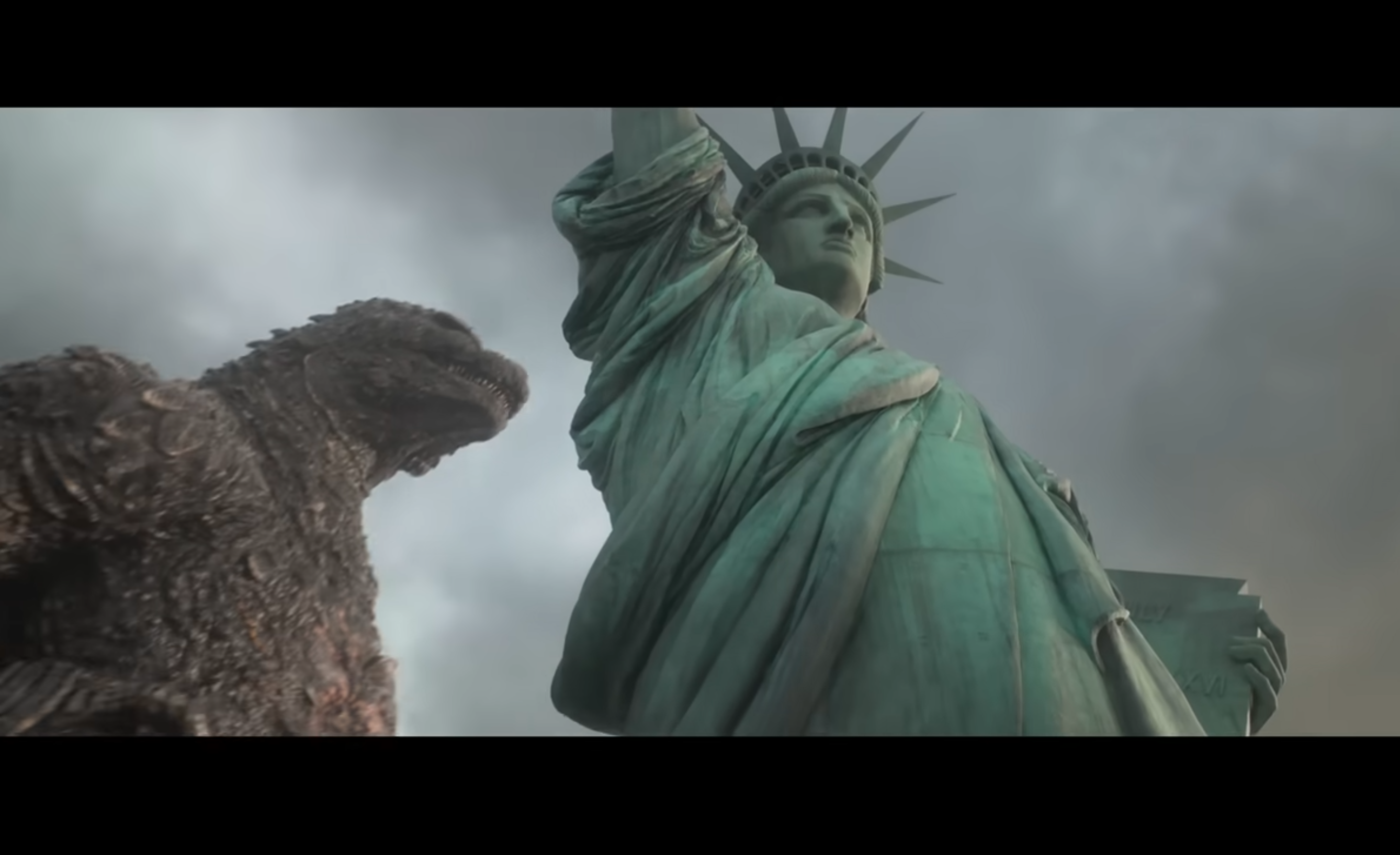 >>219782031>>219782599If anything, Godzilla looks too tall in the shot. The Minus One Godzilla was just over 50m, while the Statue of Liberty is 46m tall (to the tip of the torch), but is 93m high from ground level. No way would he even be on eye-level with her, unless he was also standing on a box.He may have grown