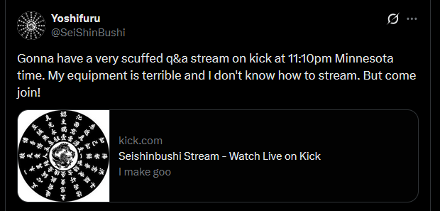 >>219805203We are here thohttps://kick.com/seishinbushi