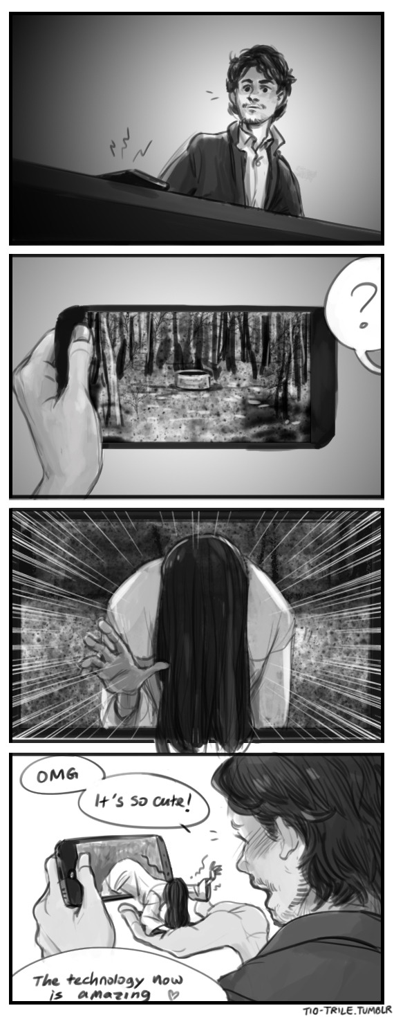 The way the 'net treats Sadako pisses me off. No she doesn't really come out of the TV, it's just a visual representation of the curse; so no she wouldn't be a little chibi if she came out of your phone, she'd either approach your screen and then teleport behind you, or she'd put her fingers through the screen and then teleport behind you after you dropped your phone. Also, Sadako is technically a boy; and the whole tragedy behind this is ignored by cumbrains. Also2 no you can't "save" Sadako, because what's left is not really Sadako, in the same way that Kayako is not Kayako but her family's rage and sadness rolled into a curse; Sadako wants to end the world, and unless you're an ESPer she's probably not going to be attracted/interested in you.