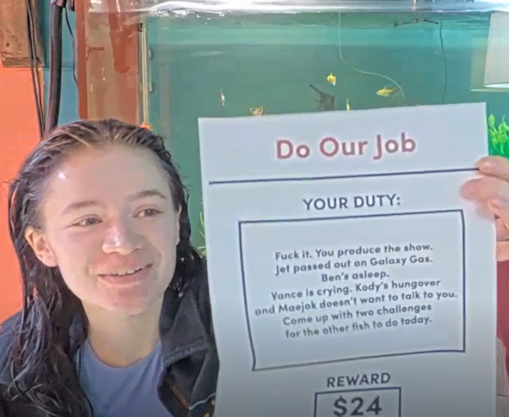 new fish in the computer roomits fish J he is a crackbaby drug addict trying to make it as a streamstar