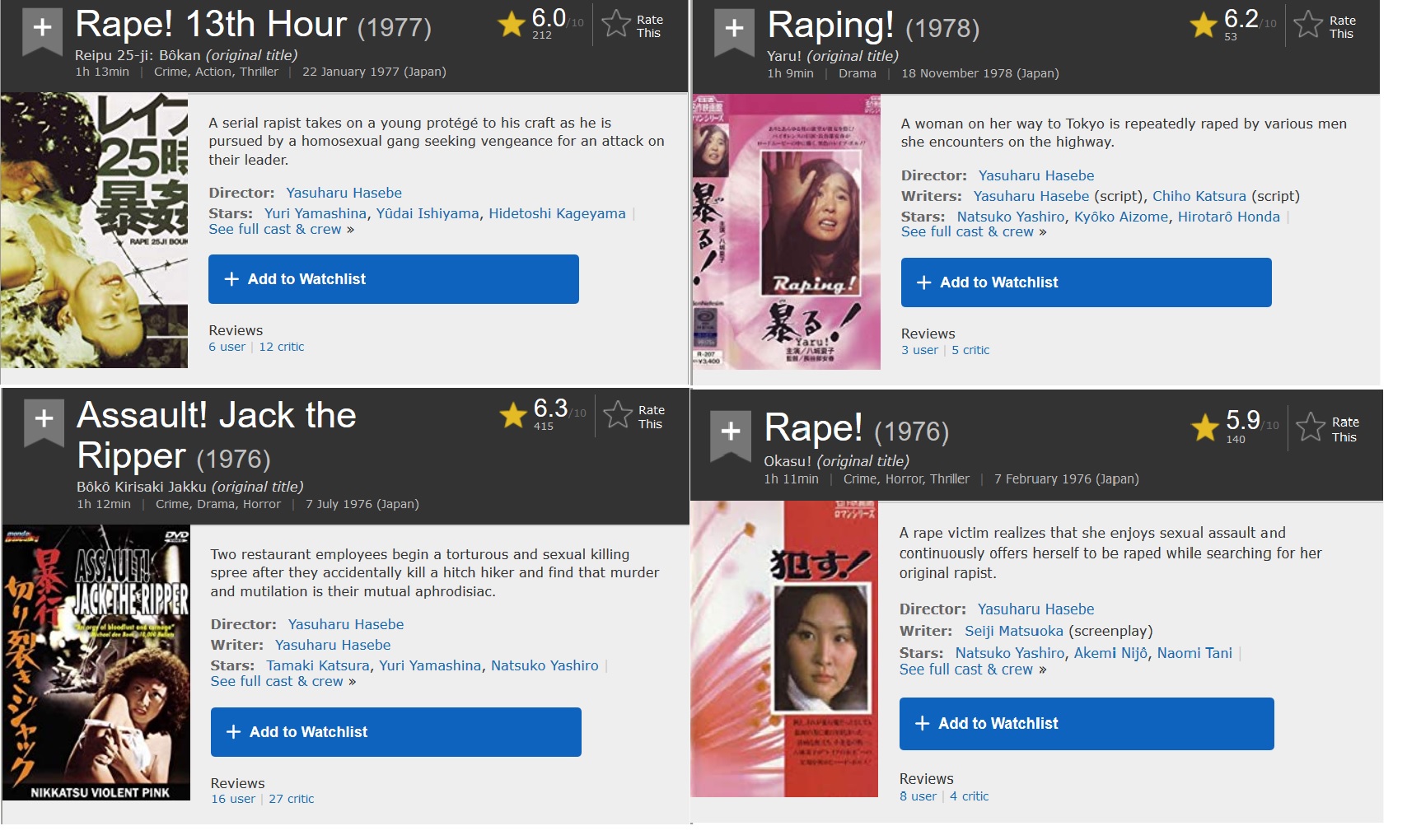 SpoorloosMost Japanese 'pink' films from the 70's for some reason.