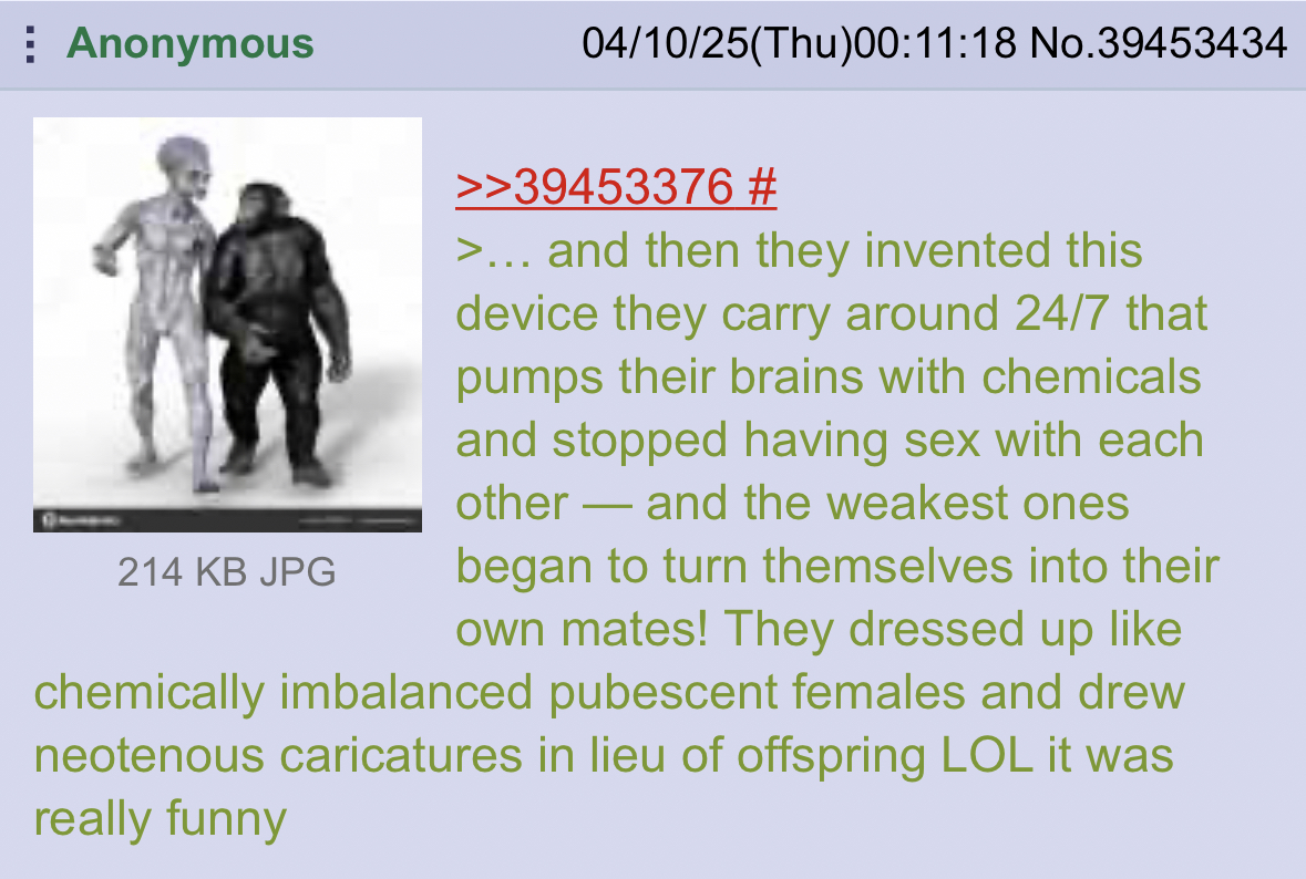 >>219874011Don’t really care, they’re sexual nuisances really as far as I’m concerned. I just want them to stop being retarded and channel their white nerd tism back into culturally enriching works.