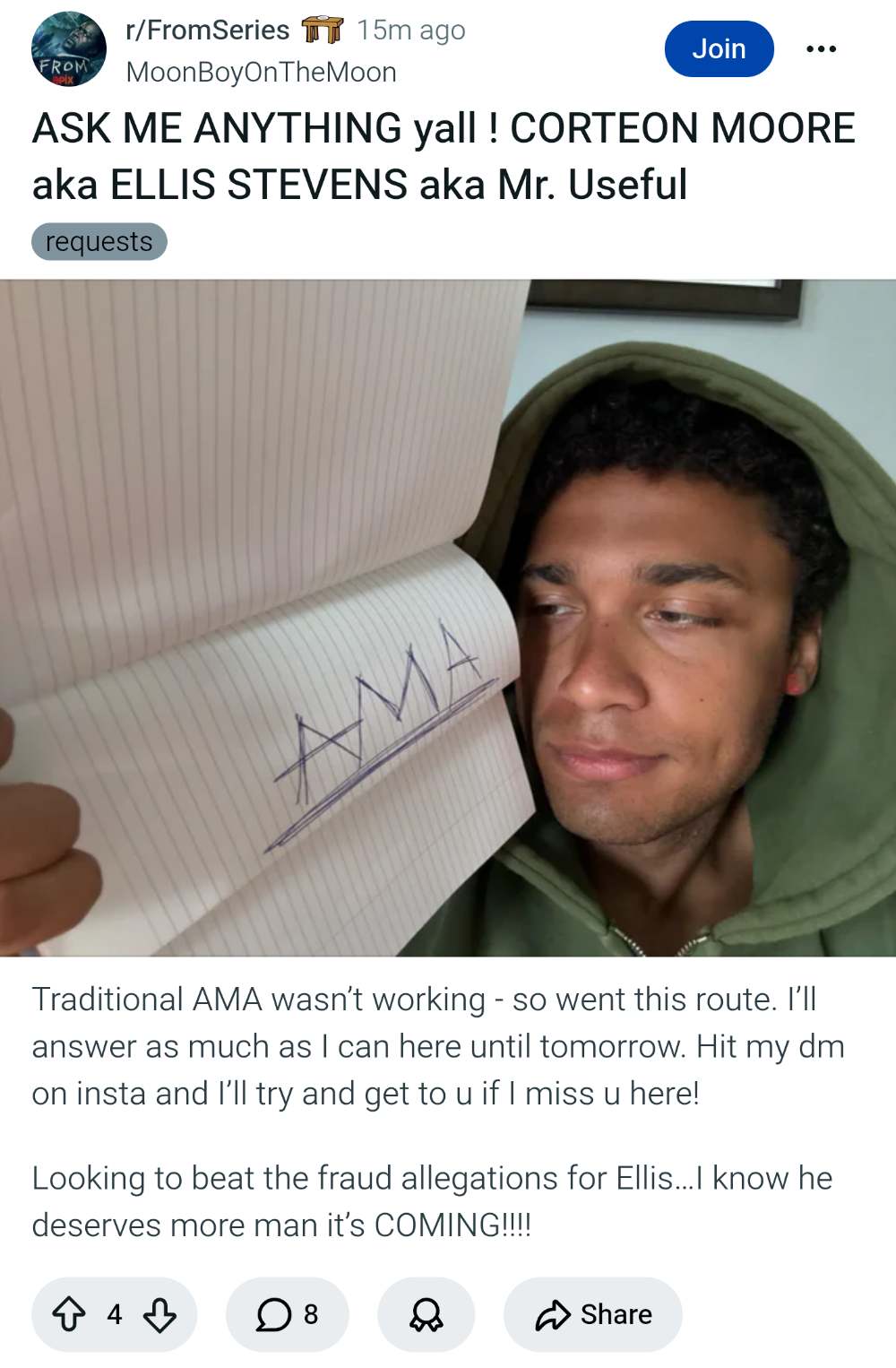 hey, do you know about the show "from"? do you think it is appropriate - or even clever - to call the monsters in that show "fromsters"? please and thank you :)>Yes — and I think “fromsters” is pretty funny, and also a bit clever. It works because it mashes the show title From into a monster nickname, and fans already tend to give the creatures informal labels since they don’t have a strong official name in the series.>Is it appropriate?>Mostly yes, especially in casual conversation. The show’s creatures are generally referred to as “the monsters” or “the creatures,” so “fromsters” feels like a playful fandom nickname rather than something that clashes with canon. It’s probably best for jokes, recaps, memes, or chats with other fans, not as a serious term in formal discussion.>Is it clever?>A little, yes. It has that neat little wordplay effect: From + monsters = “fromsters,” which is memorable and easy to say. It’s not the deepest pun ever, but it’s exactly the kind of goofy, sticky nickname that can catch on if enough people enjoy it.>My takeI>’d call it lightly clever and very usable. If you want the name to sound more serious, “the creatures” is better; if you want something playful and fan-y, “fromsters” absolutely gets the job done.