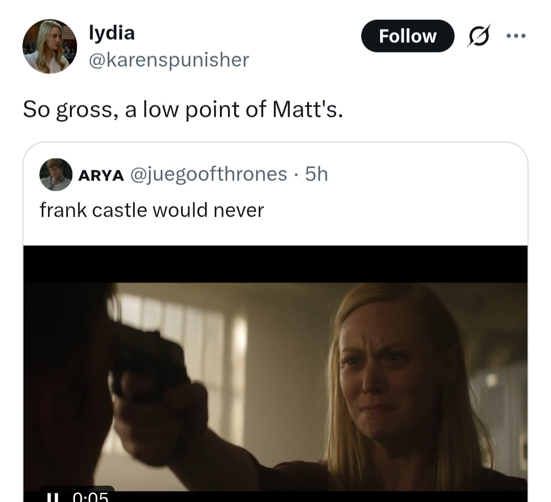 I gave up on S1 of Born Again halfway through because it was so garbage and nothing like the Netflix kino. And then these threads kept insisting that THIS season was a return to form, so I gave it a chance.