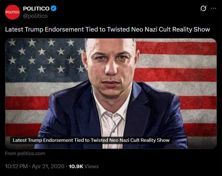 -- Trump endorsed the Stickermule guy in a congressional election https://x.com/dom_lucre/status/2046652021961638353