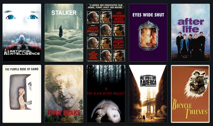 Every list here has at least one movie that nukes me appreciation of it.No order, probably forgetting something so it's just off the top of my head.1. Les Dimanches de Ville-d'Avray2. Extreme Prejudice3. To Catch a Thief4. The Hunted5. The Tenant6. The Saragossa Manuscript7. The Bridge on the River Kwai (+Passionate Friends)8. House of Games (+Spartan)9. The Ninth Configuration10. Lost Highway (+Inland Empire)
