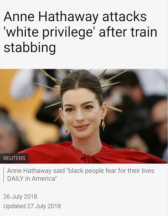 >>219944688Hathway white privilege posts and talks about our collective guilt in IG posts where replies are disable btw. I will never understand the love some of /tv/ has for her.