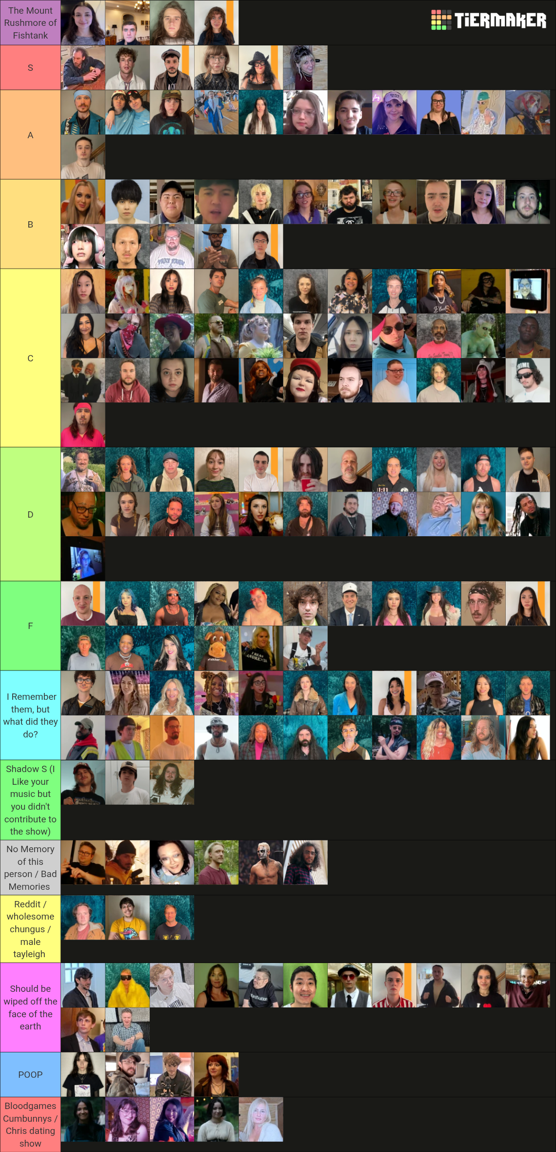 Bashir is not S tier, he is like a high A tier. He was only good for the "canon" season moments like challenges, fights, arguments etc. but during downtimes when he was hanging out or talking with other fish he was pretty unwatchable and insufferable. Not nearly as fun to watch day to day like Freddy, Burt, Alex B, etc.