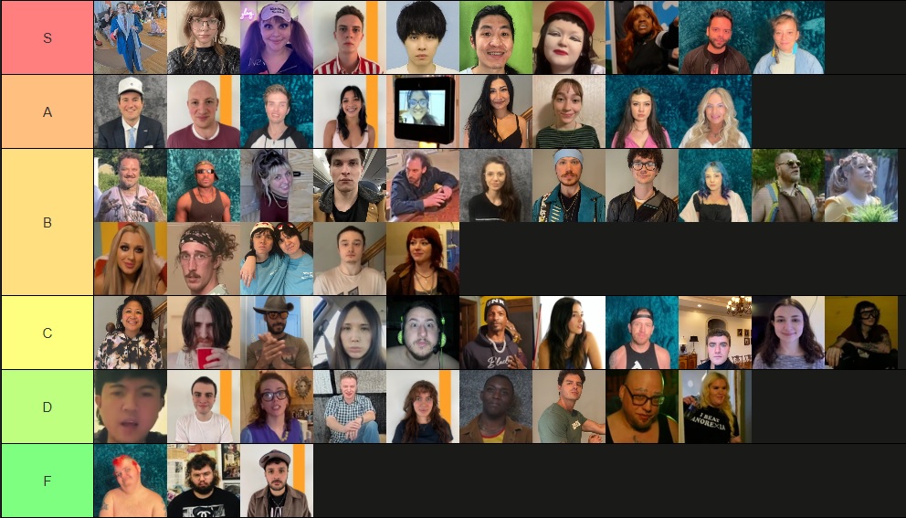 >>219951077>>219951136Trvke. He is solid A tier. S tier should only be reserved for content kings that are entertaining consistently every single day, with or without people around them. Freddy, Burt, Jon, Alex, Mauro.