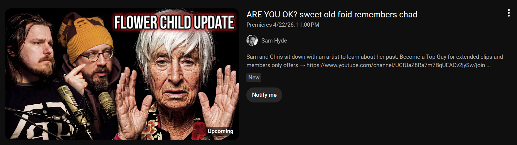 So is Sam's new show basically just>look at these huge 30+ fuck ups, you better be scared and not end up like them i'm not complaining, both episodes were funny