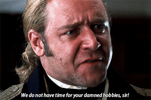 >WE DO NO HAVE TIME FOR YOUR DAMNED HOBBIES, SIR!How do you respond without sounding mad?