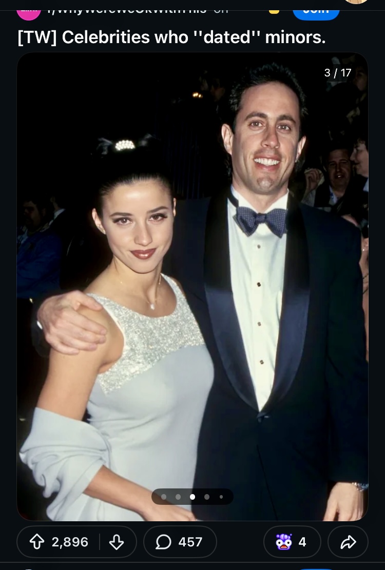 >>219996911I'll defend Jerry here: this was an intra-Jewish elite relationship. She was rich and beautiful, their Jew families were connected. She had no issue at all with this relationship, very silly to paint her as a victim when it was business as usual for these elite Jews