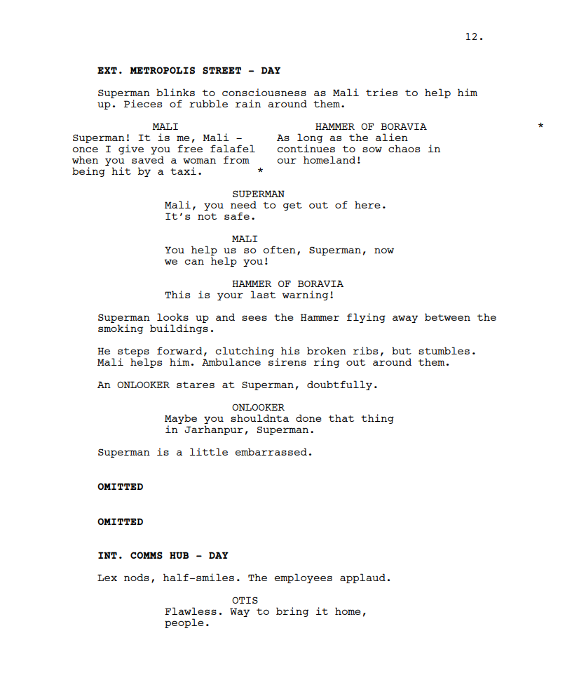 but I tried watching this and the dialogue is so awful that I couldn't stand to watch it. I did consider watching it in another language but it doesn't deserve my time.I don't think Gunn is particularly talented but I assumed in a cape-slop movie, his dialogue work wouldn't be the main issue.I was interested in seeing where they took it and I quite like the idea of a return to traditional optimistic hopefully story telling but I couldn't get past 10 minutes of the dialogue and some of the worst most insulting exposition ever written.I didn't think it could be worse than the Snyder films but they were just films made by a dork who makes college-level fan films without understanding the source material who was lucky enough to have landed on 4/5 good choicesWhereas James Gunn does know comics and had full executive control and he makes bad choices so even though the film probably isn't made as badly as BvS, It still somehow a worse overall experience. It's simply an incredibly irritating film from the very beginning. everything about it is annoying.Worse than the matrix 4.no points.
