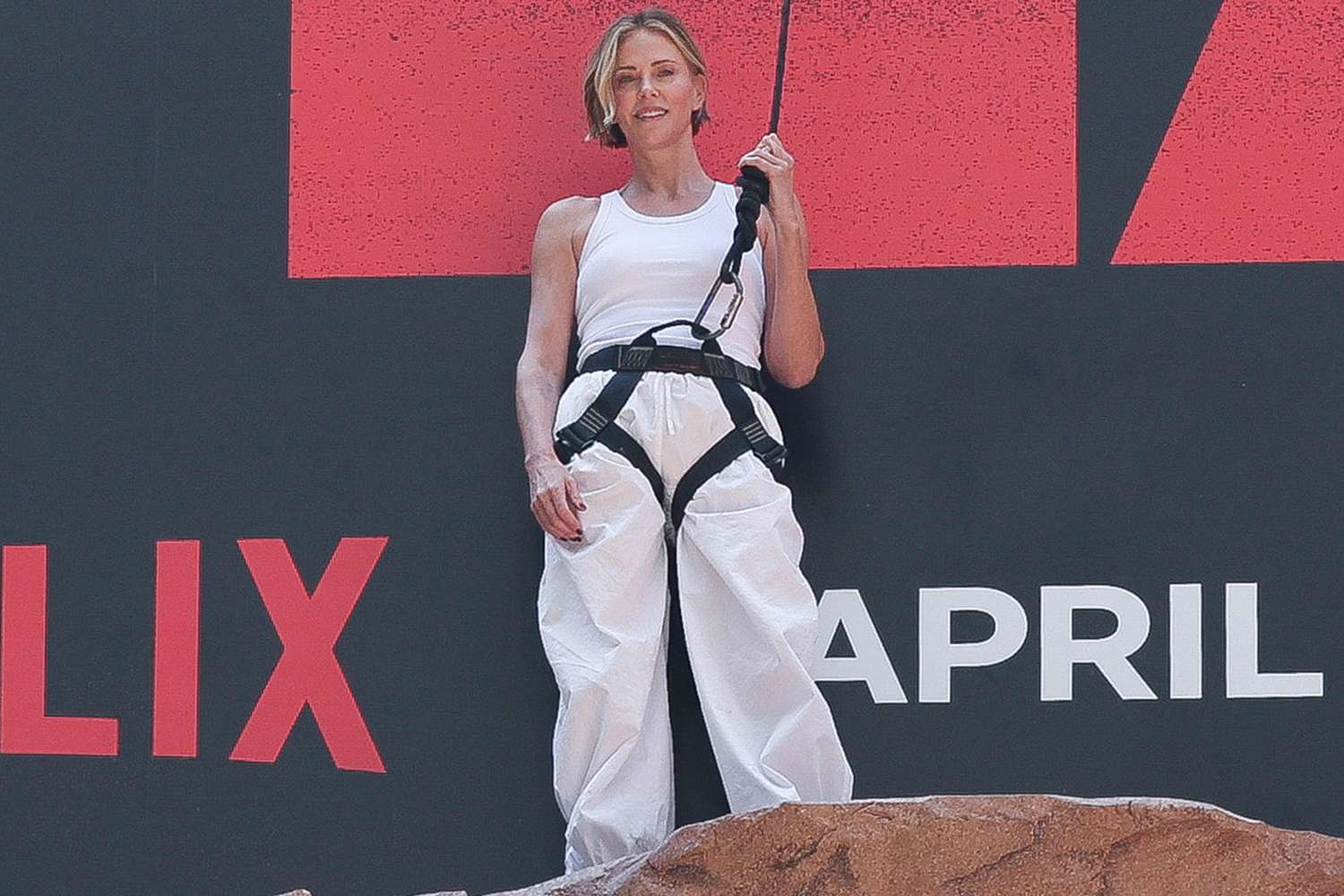 > You might have noticed a mysterious figure scaling a movie billboard in New York City today. No, it wasn’t Spider-Man. That was Apex star Charlize Theron, showing off the intense training that prepped her for her new action film now streaming on Netflix. Trying to stay relevant must be exhausting.
