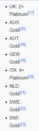 >>220044349yeah, Take That were a major bestseller, topped all the charts, and are internationally famous. how often is it an album goes multiplatinum in a foreign country? let alone many of them, in many countries.https://en.wikipedia.org/wiki/Take_That_discography#Studio_albumswe are measuring a phenomenon by the metric it's measured by. i'm not even sure what you're being sarcastic about at this point.