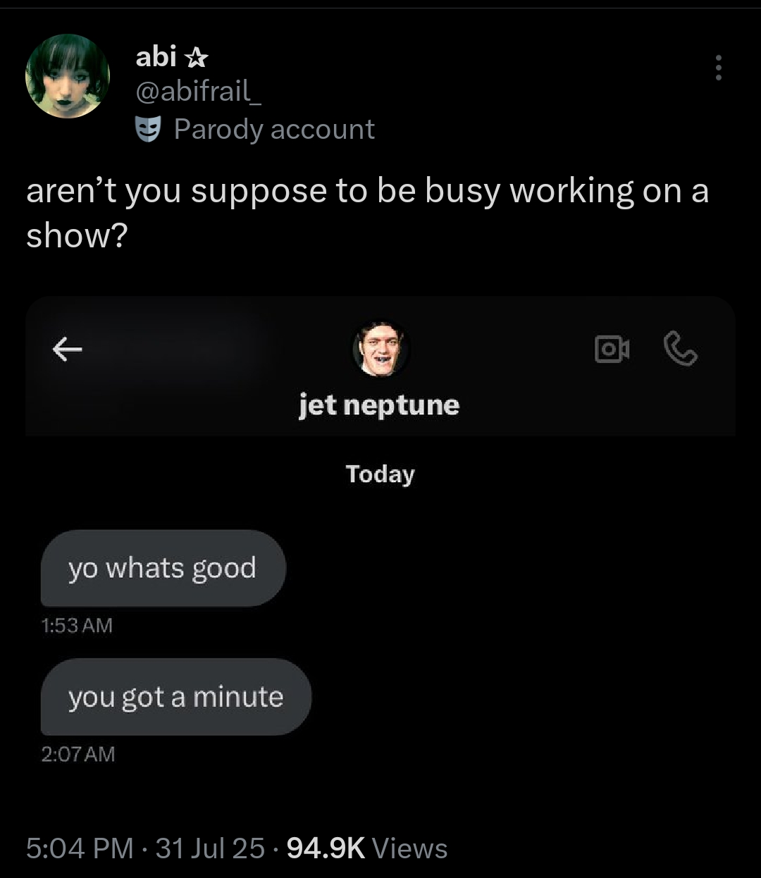 is jet aware that abi and her boyfriend have been a-logging them for like a year