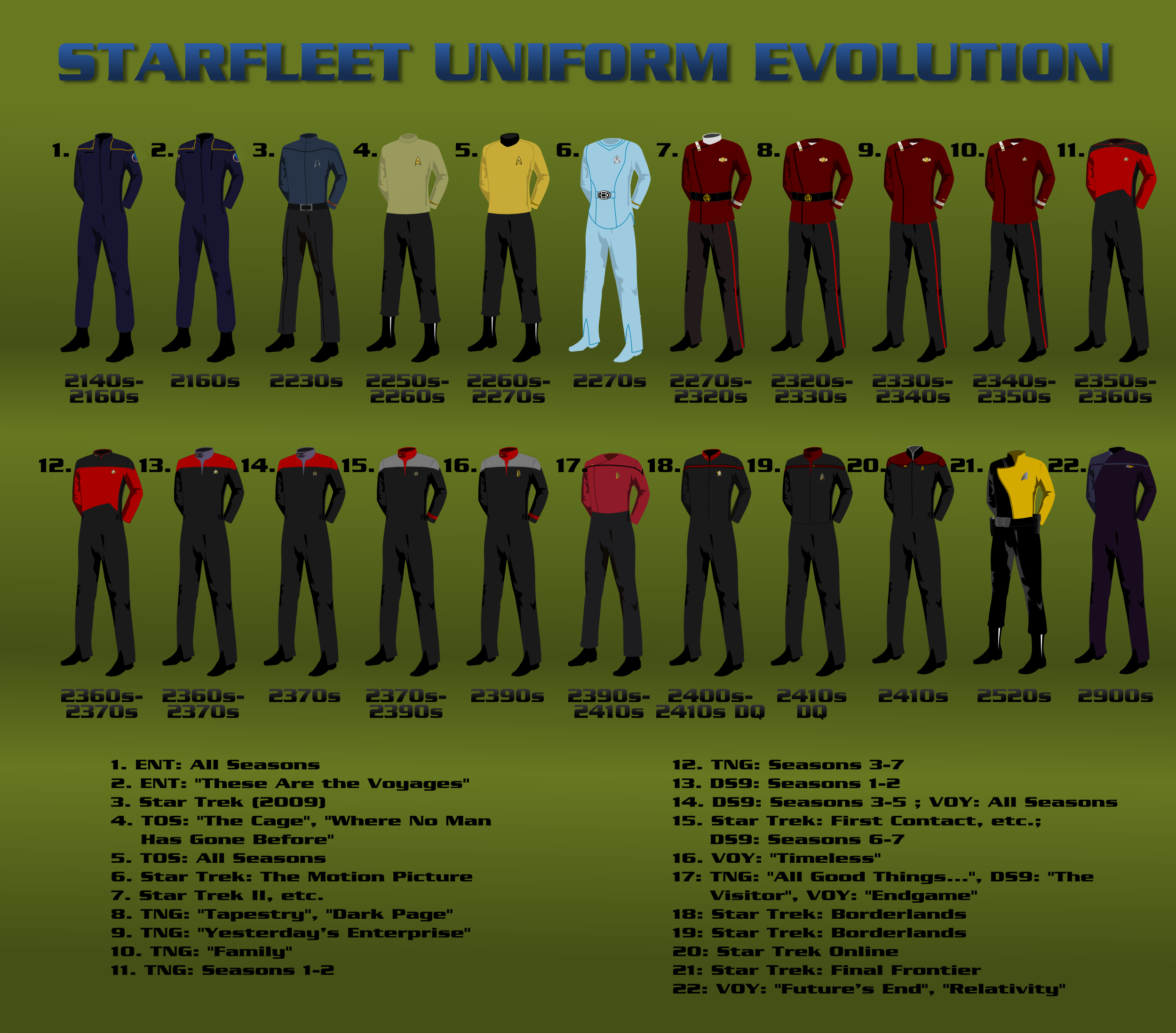 >>220098284The turtleneck collars still indicated one's division, though. Enlisted uniforms were a bit more ambiguous. By The Next Generation, they solved the ambiguities.