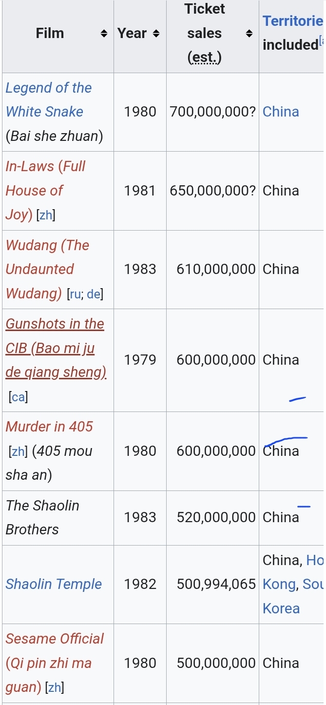 >>220098907>worldwide: exact numbers down to the last one>China and India: lots of zeroes, ? evenYeah, sure. Also why are you assuming Chinese theaters would still have the same ticket prices as they did in the 80s, which were likely dirty cheap.