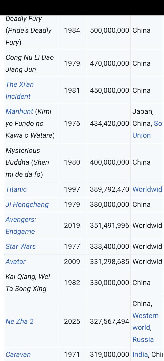 The films that sold more tickets in history are all Chinese. That's when China was poor. Now imagine nowadays when China is the largest economy in the world - in the REAL economy (not nonsense invented by Jews like GDP)