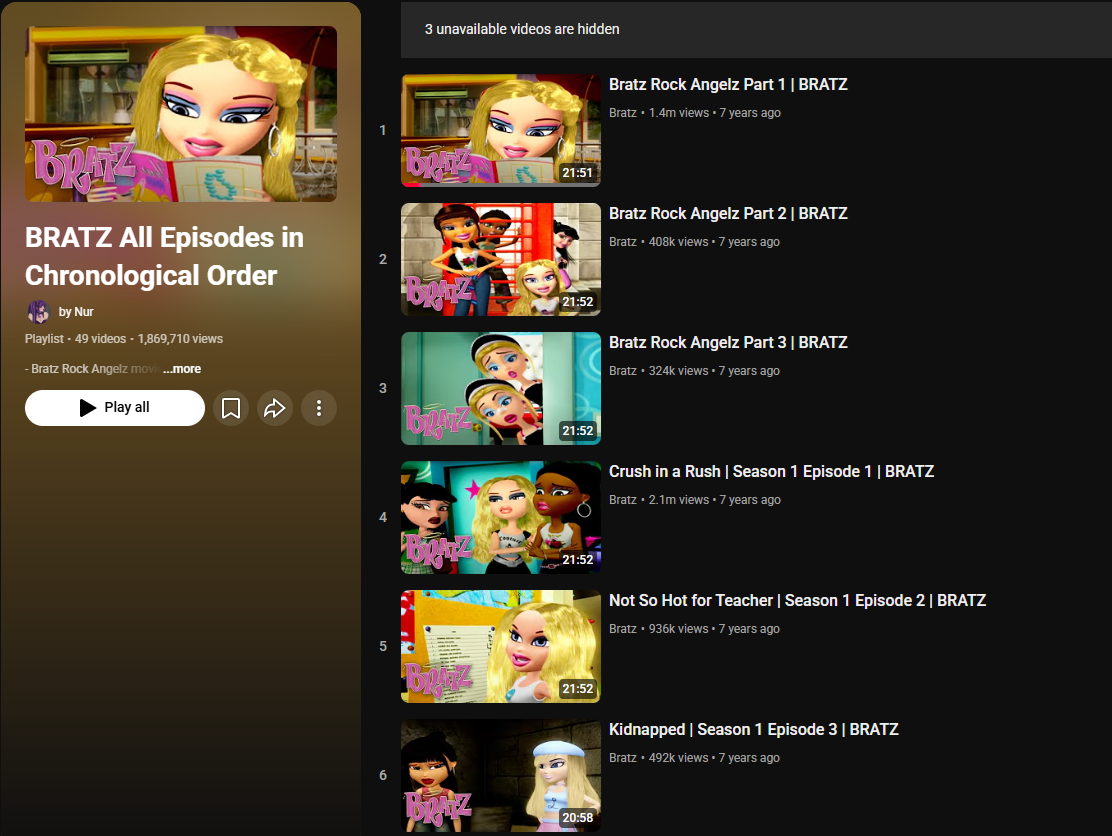 Why pay for expensive streaming services when you got Bratz free on youtube?