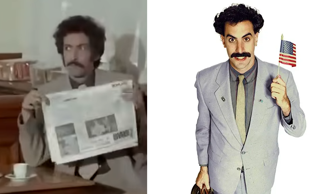 Not necessarily the internal attributes of the character accent/personality etc. But the external. Same suit/Mustache/ Hair.https://youtu.be/s4u5l3JlBwI?t=1491https://youtu.be/s4u5l3JlBwI?t=848https://youtu.be/s4u5l3JlBwI?t=899This is from the 70s movie The Mad Adventures of Rabbi Jacob very slapstick style comedy I could see Sasha watching in his youth. The character is simply a henchmen that had no large plot in the movie.