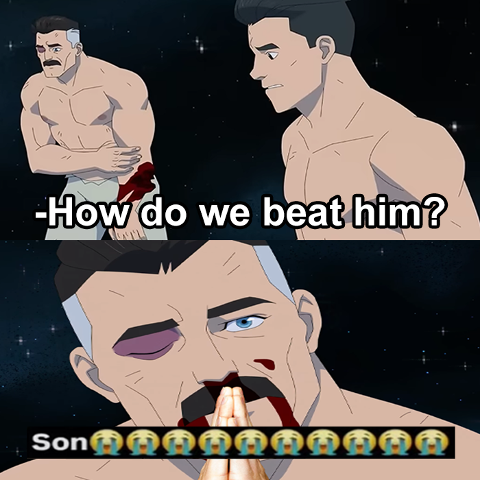 This show (yes, I know it's a comic) feels like it's forever the peak of Omni-Man killing off the not-Justice League in the first season. I hate when I can't trust a show to actually kill off the characters it threatens to>surprise, Kate had a body double>surprise, we re-attached Immortal's head (again)>surprise, the martian Redditor's organs are actually intact>O, my atom nen!!ENOUGH