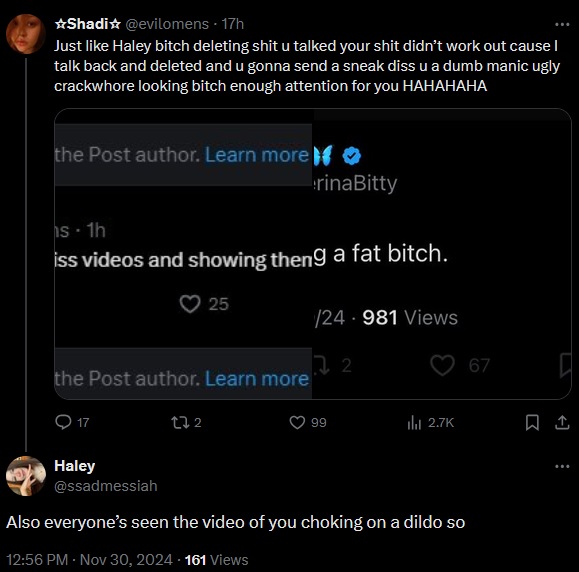 >I got drunk and sucked dick and they took a video and i DIDNT LIKE IT>btw id rather be raped than bored>btw i show my panties to homeless guys>btw his dick was bigger than my boyfriend's (I was also cheating on my boyfriend for like a week)>btw im, like, into jet>anyways, everything is everyone else's faultWhat should we do with the mentally ill?