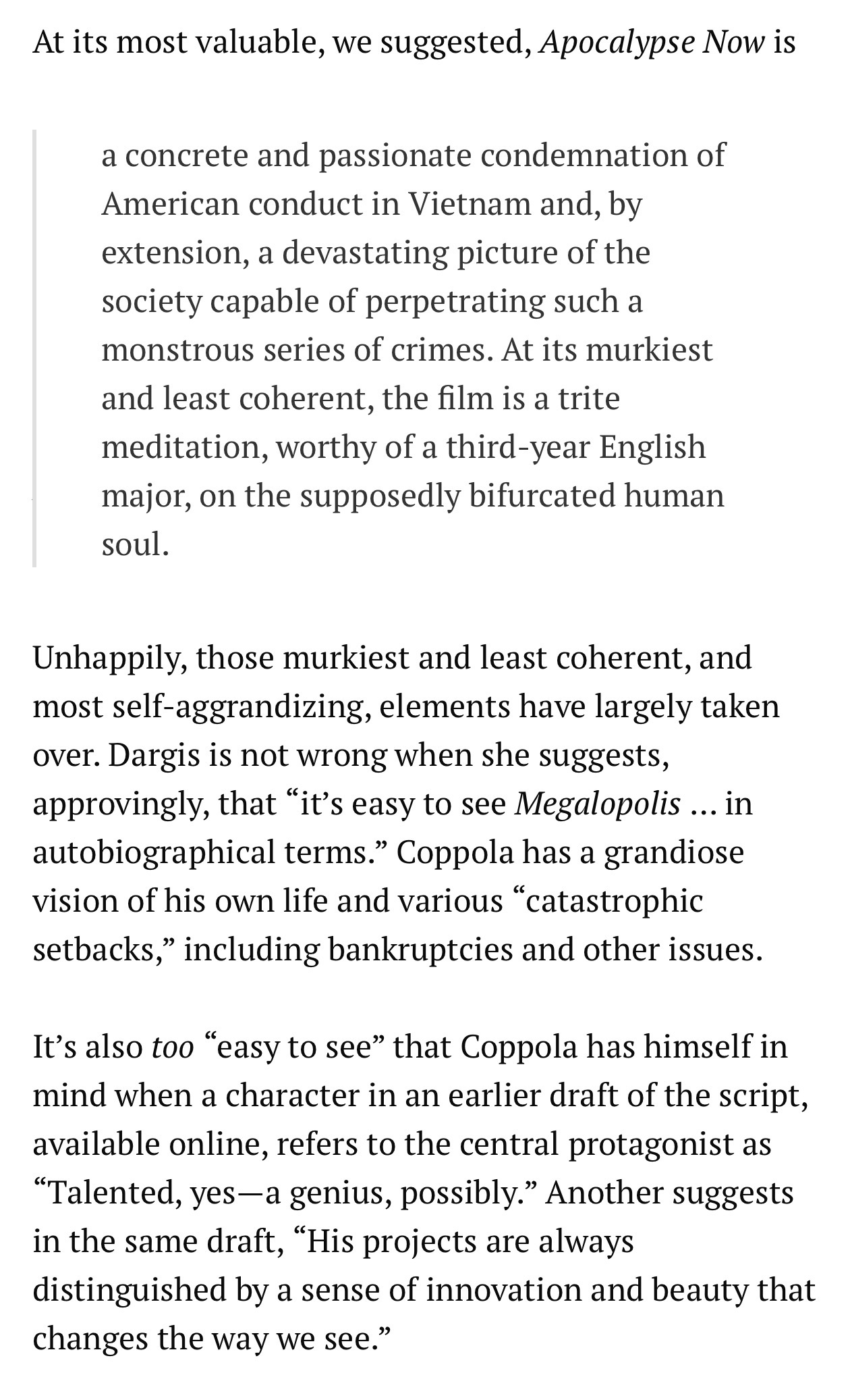 It’s convoluted and doesn’t even have an ending. It’s carried by the sound design, soundtrack, and acting. Sometimes the lingering camera shots are just pretentious.