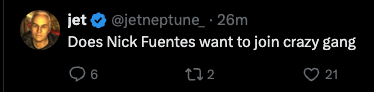 >Jet neptunes 2 week miami content stream>Reptile convention, promo for dead tranny club ran by friends of the show, promo for binx's favorite club where her hag friend is DJing>30 minutes into a random day on Diamond's stream>Kevin birthday bash at Arby's with hookers and galaxy gasJet is an embarrassment