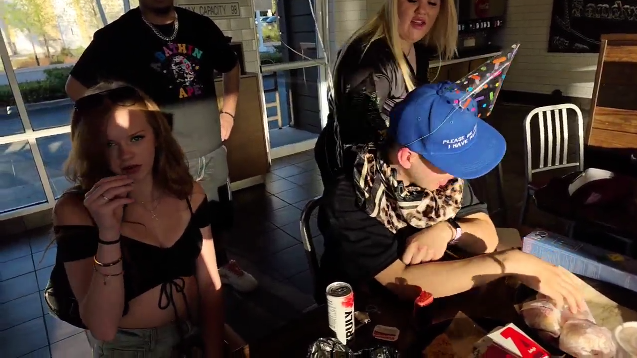 >drive to clavicular's club>run away from it at the opportunity of a link up with clav was amused by Aryeh and drago wanted to fuck letty>meet up with jack doherty who said on his stream he might invite them to island boyz party>pussy away from it and act like an awkward chud making fishtank sound like a gay make a wish shit>buy aryeh clothes>play mini golf>drive an hour to find a homeless guy to give him 13 bucks then drive two hours back>drive to binx' friend party venue>run away from it
