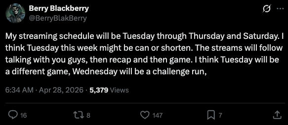 >>220142182I like how he said this, and it's tuesday and he hasn't fucking streamed.