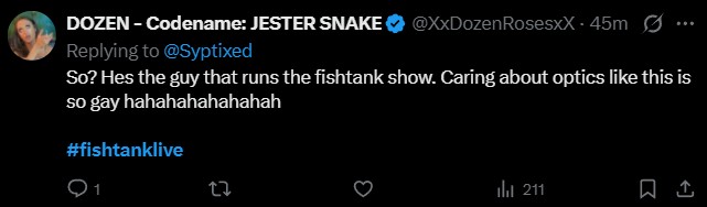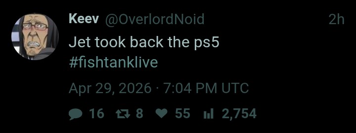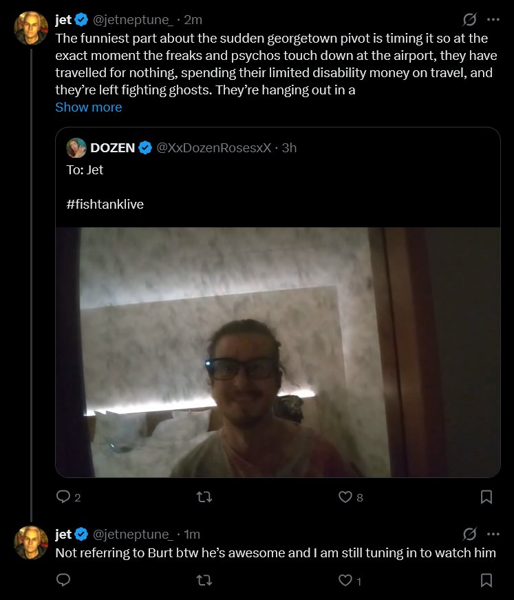 >>220182740The funny part is that there actually are IRL streamers who embody the spirit of Fishtank - but Jet immediately burnt his bridges with all of them lol.