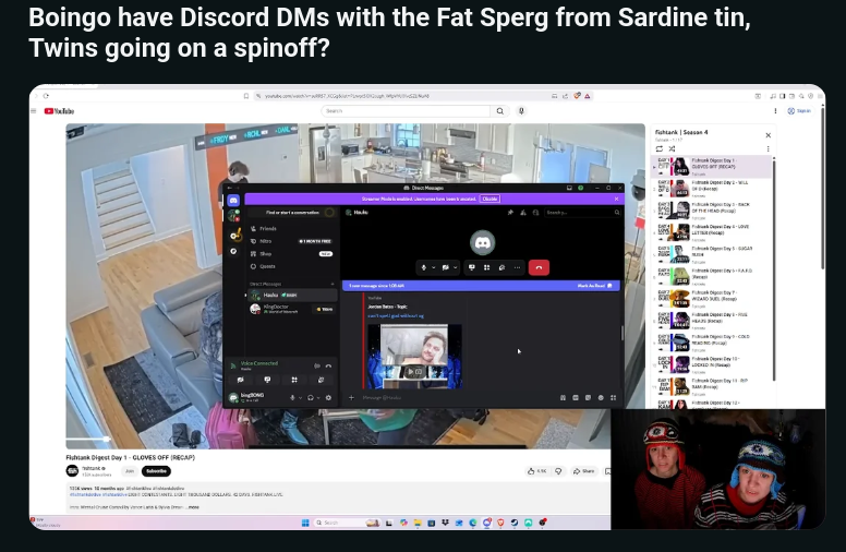 need to be making the case to the twins if they want to stream long term it's in their interest to seperate from fishtank as much as possible and not lean on fishtank related stuff but try to figure out independent stuff they can do, otherwise their streaming career will not last very long