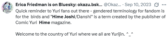 >>4480005She has tweeted that it was YH's publisher that created the termshttps://x.com/OkazuYuri/status/1700796268891476238