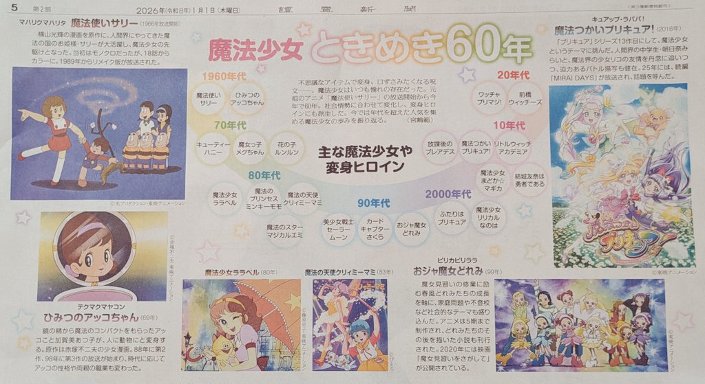 >>4512513>60th anniversary of Mahou SoujoShould've been 60th anniversary of Sally the Witch.I forget Maho also featured in Toei's 2026 calendar. So yeah, a lot of Mahoutsukai info recently.