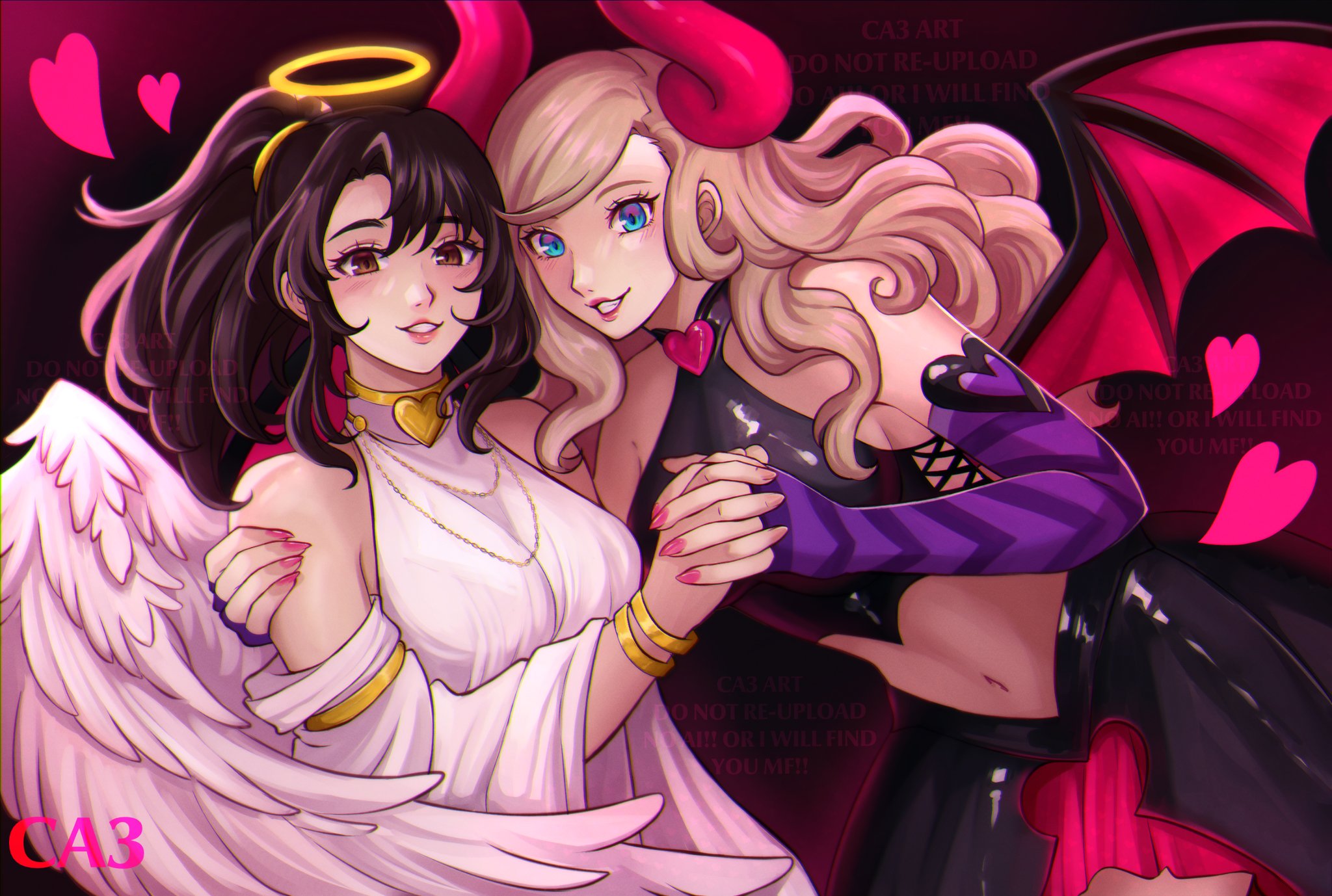 Post pictures of love and sex between holy and unholy; devils/demons and angels proving yuri can overcome any difference between girls.