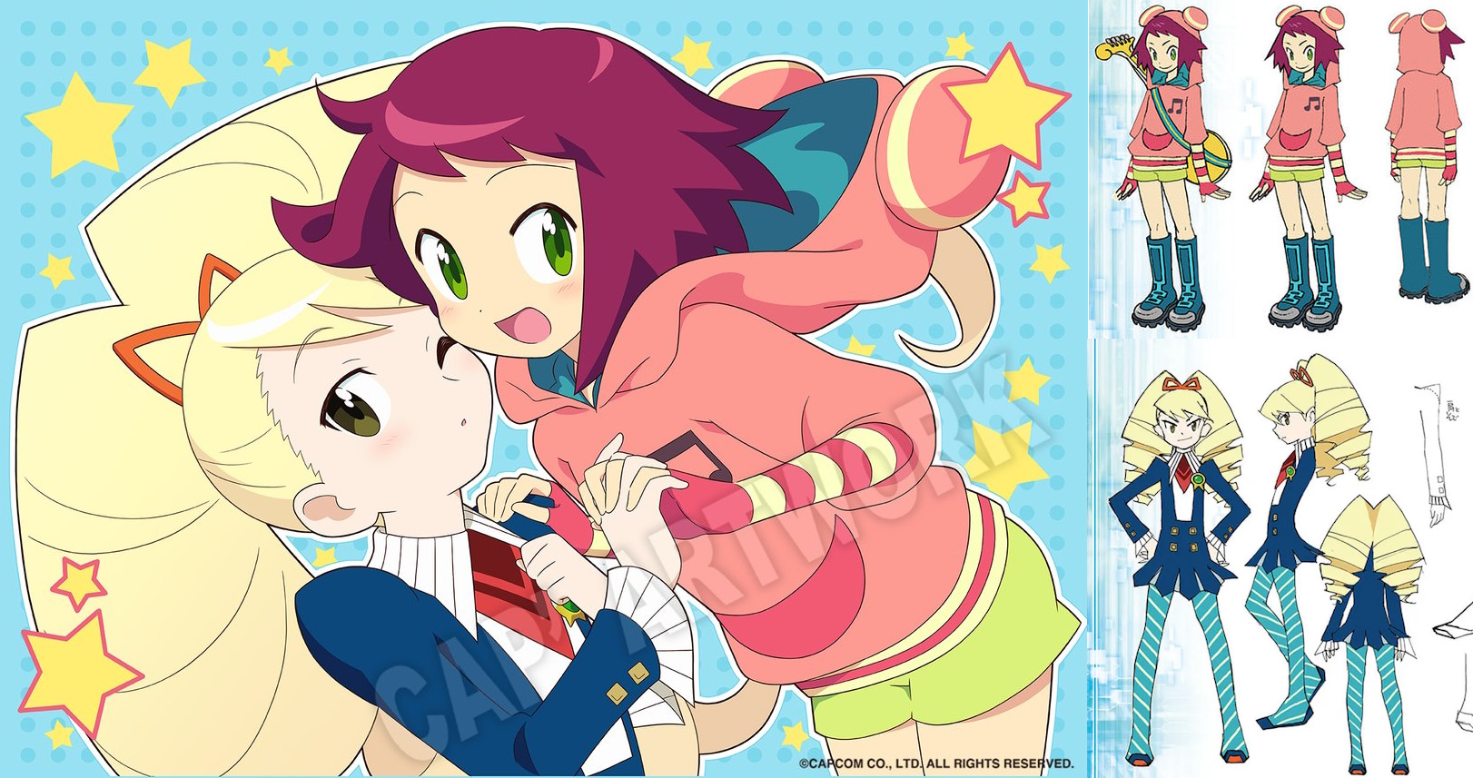 Requesting something cute with the two girls from Megaman Star Force. Probably light kissing or just holding hands and blushing.