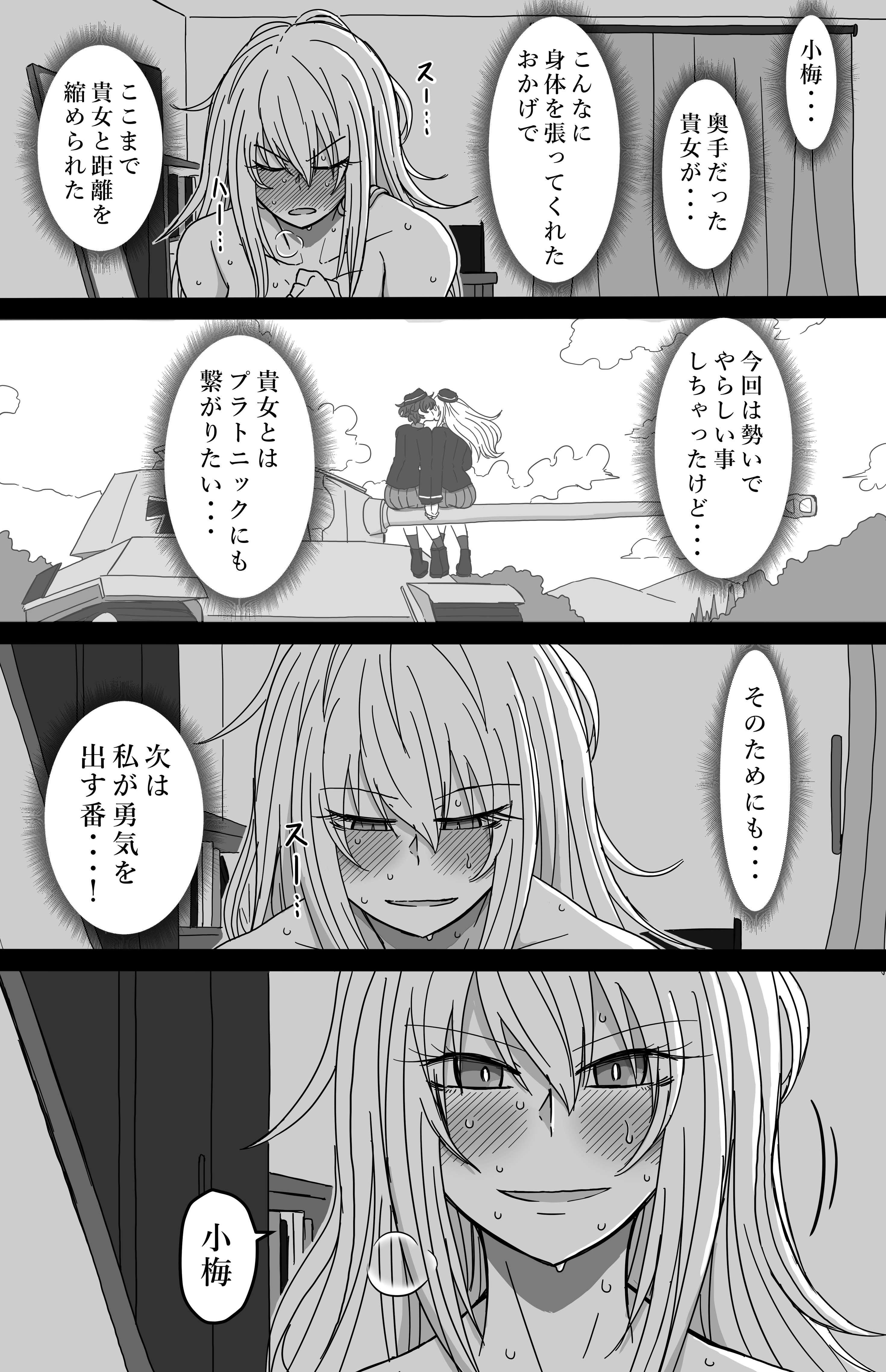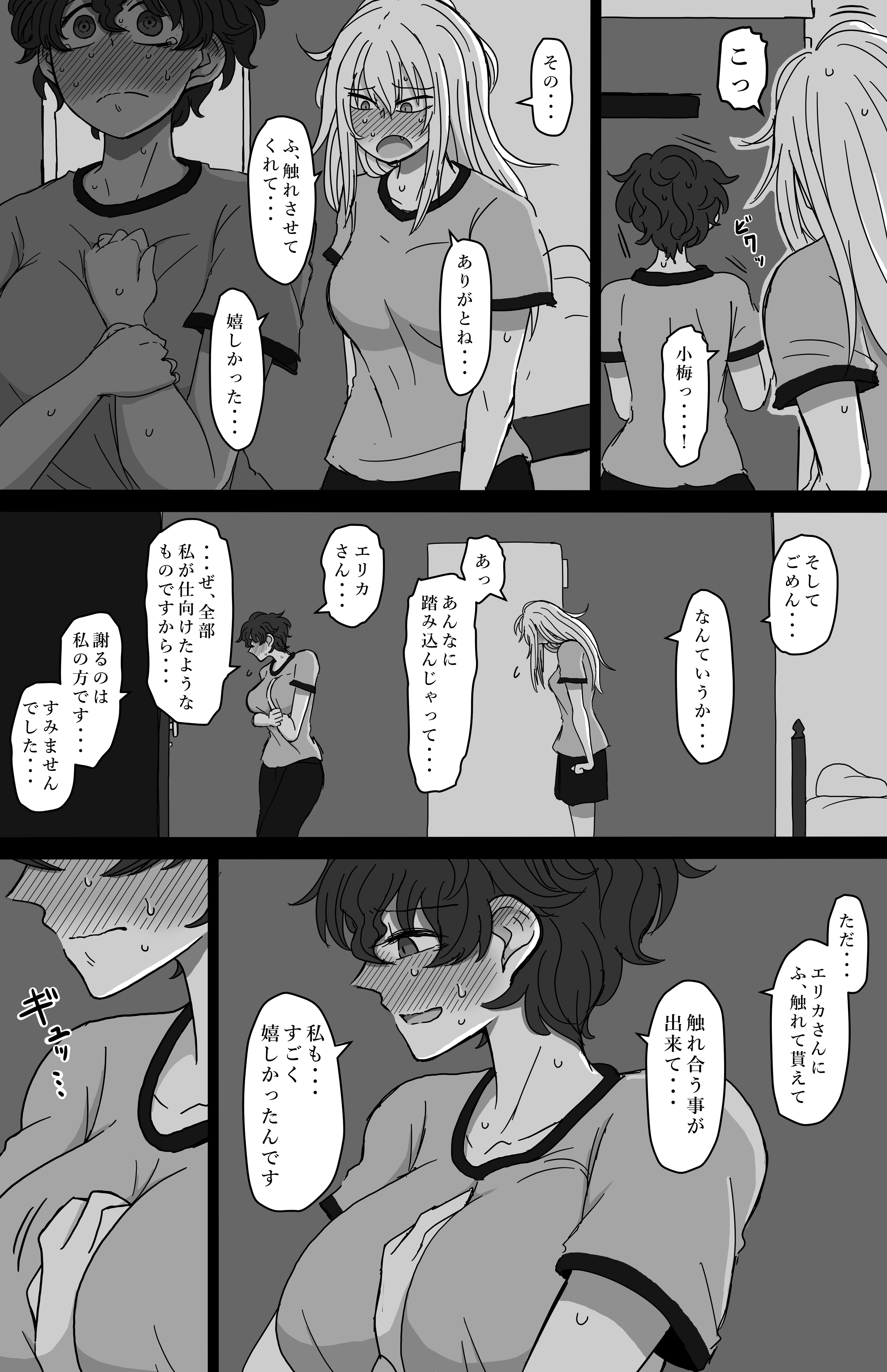And back to wani and koummers. >さあいよいよページ数にして60ページを超えましてね。ただひたすらお互いのおっぱいを揉み合うだけの百合展開に60ページも費やす狂人がこちらになります。こんにちは。僕は元気です。梅エリも元気です。元気すぎます。どんどんやれ。>Now, the number of pages has finally exceeded 60. Here's a madman who spends 60 pages on a yuri plot where they just fondle each other's breasts. Hello. I'm fine. Umeeri is also doing well. I'm too energetic. Keep doing it.
