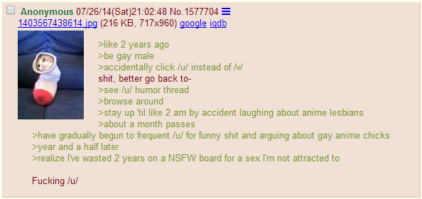 This is an oldie, but does anyone have the old comic where an Anon goes to click on /v/ but misclicks and ends up on /u/?