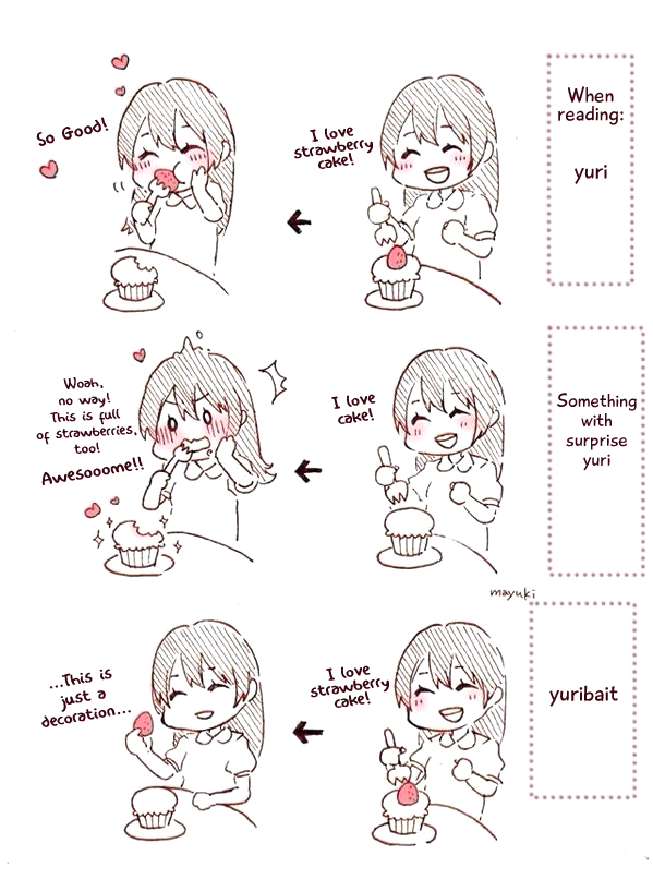 Yuri bait: I love strawberry cream cake! Oh... this is just a decoration...