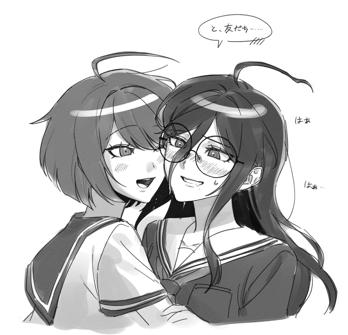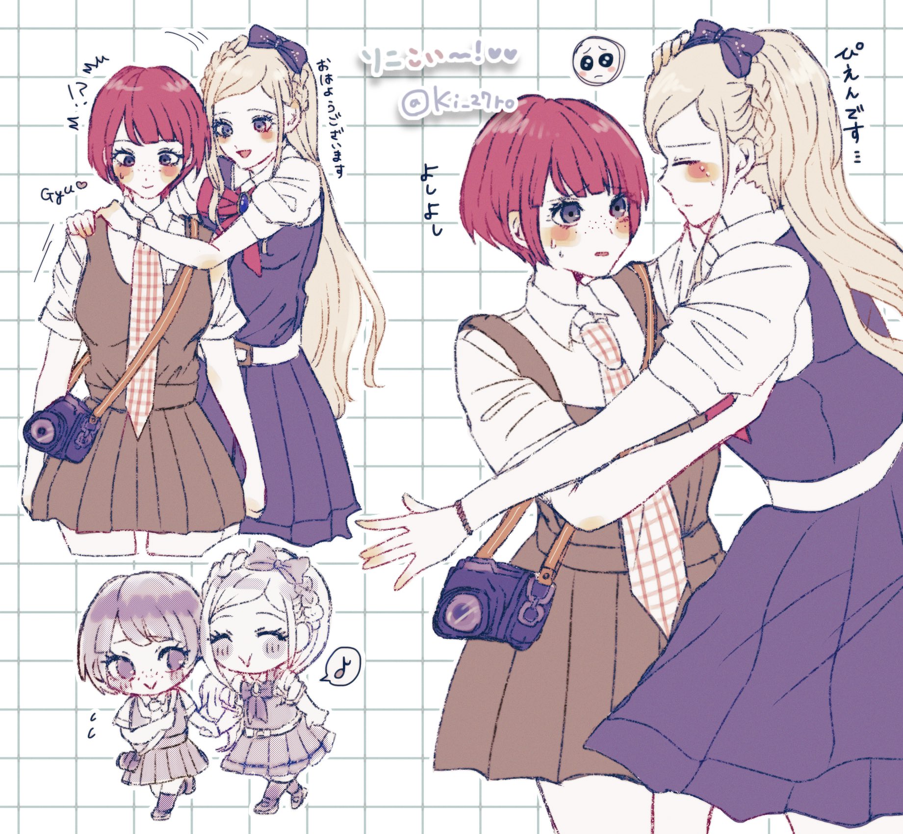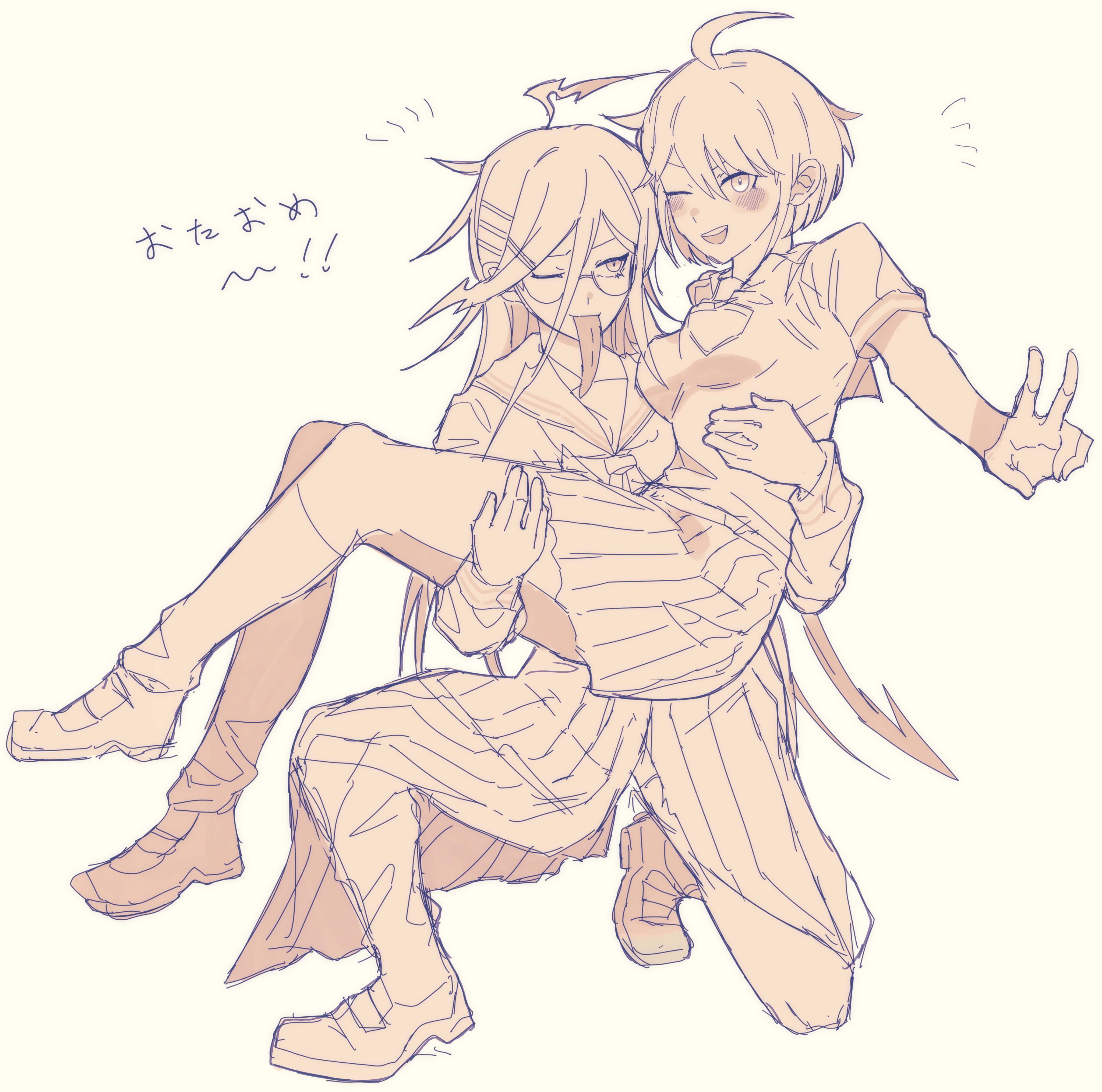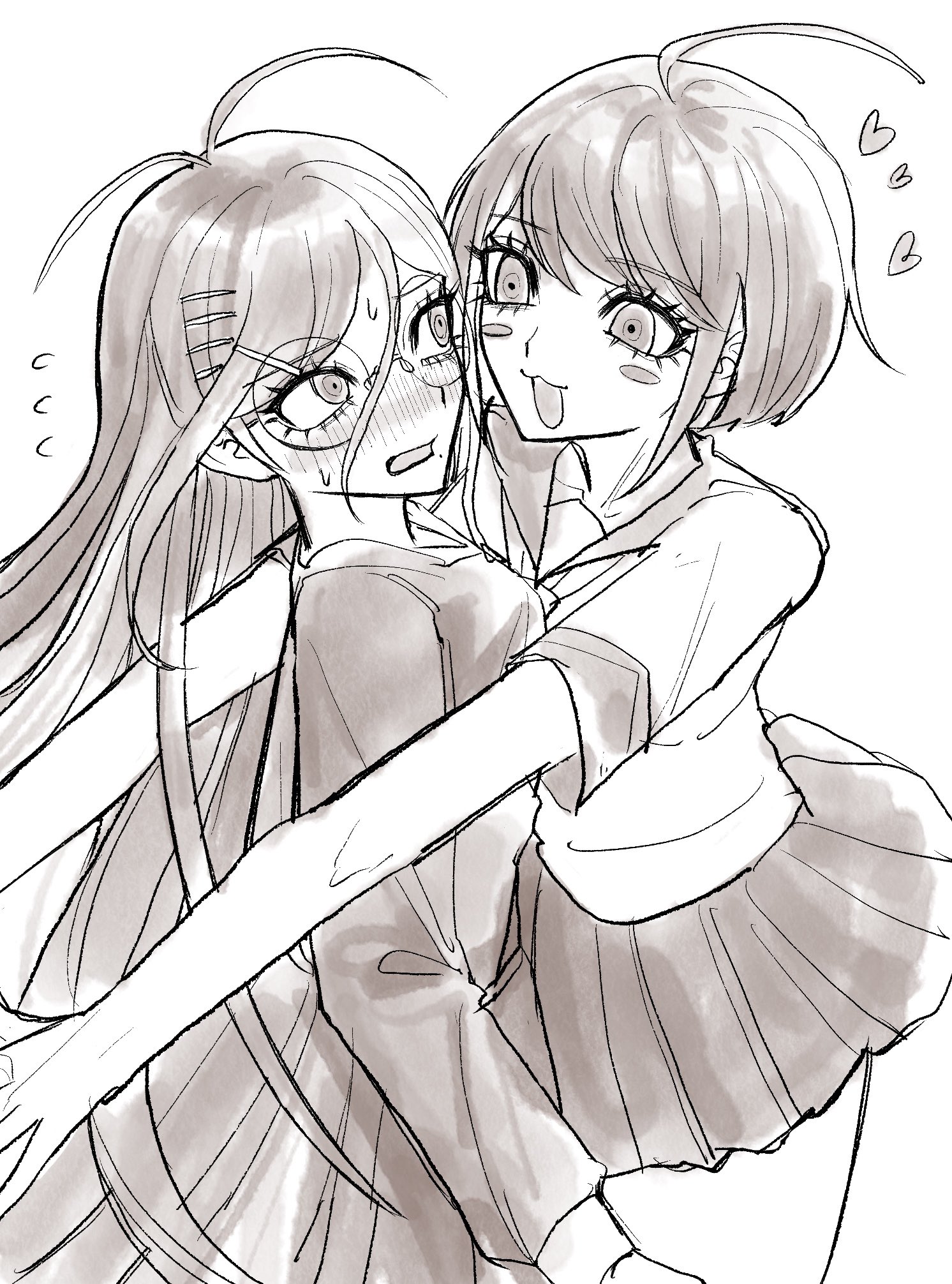 peko is buried in the middle somewhere, her leg is tossed over sonia's shoulder