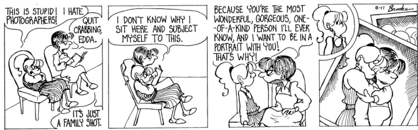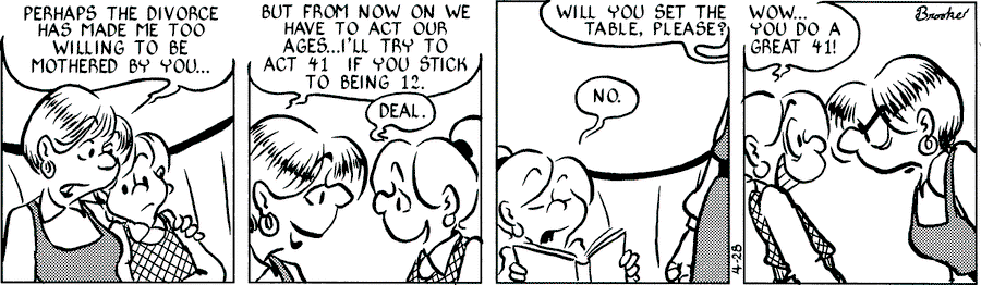 >>4500747I love mother/daughter so much because of how it warps the unconditional, nurturing nature of a mother's love into something so much more romantic and intoxicating. A mother will always love her daughter, but that isn't always reciprocated so it's nice to imagine a mother desperate for her daughter's love in any way she can get it (even when it's fucked up). There's a lot of room to explore different dynamics and scenarios in mother/daughter, but you're not going to find any of it in media that's already made. Right now I have a lot of it is trapped inside my mind...Also what >>4500789 said, moms in media almost always take a backseat in the narrative. At most you'll see a supportive mom who loves her MC daughter and then you never see her again besides a few brief moments. So I just make my own stuff up, but there is this one newspaper comic that I've forgotten the name of (picrel) where the mom is reliant on her daughter for comfort after a divorce(?) to the point of overstepping her bounds and creating a bit of a twisted relationship with her. Pretty great dynamic, but also extremely rare to see in canon media.