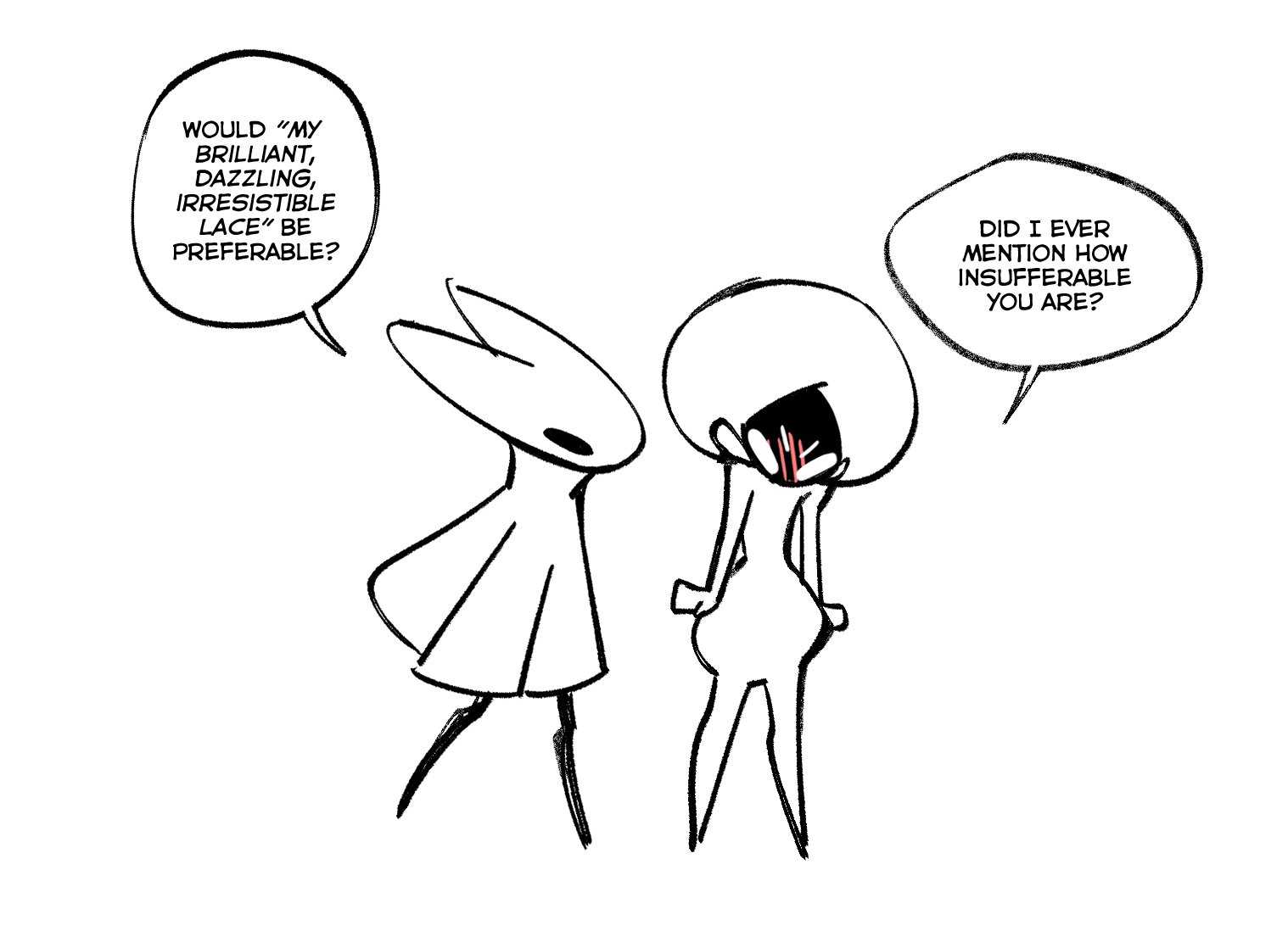 >>4501767The Needolin scene in the Exhaust Organ? Don't get what's cute about it, but it certainly is sad. This one singular moment also made the whole fanfic scene go insane about Lace and Phantom connections and it's very common for writers to exaggerate their relationship as sisters with headcanons. Hornet killing Phantom is always used for juicy drama between her and Lace.