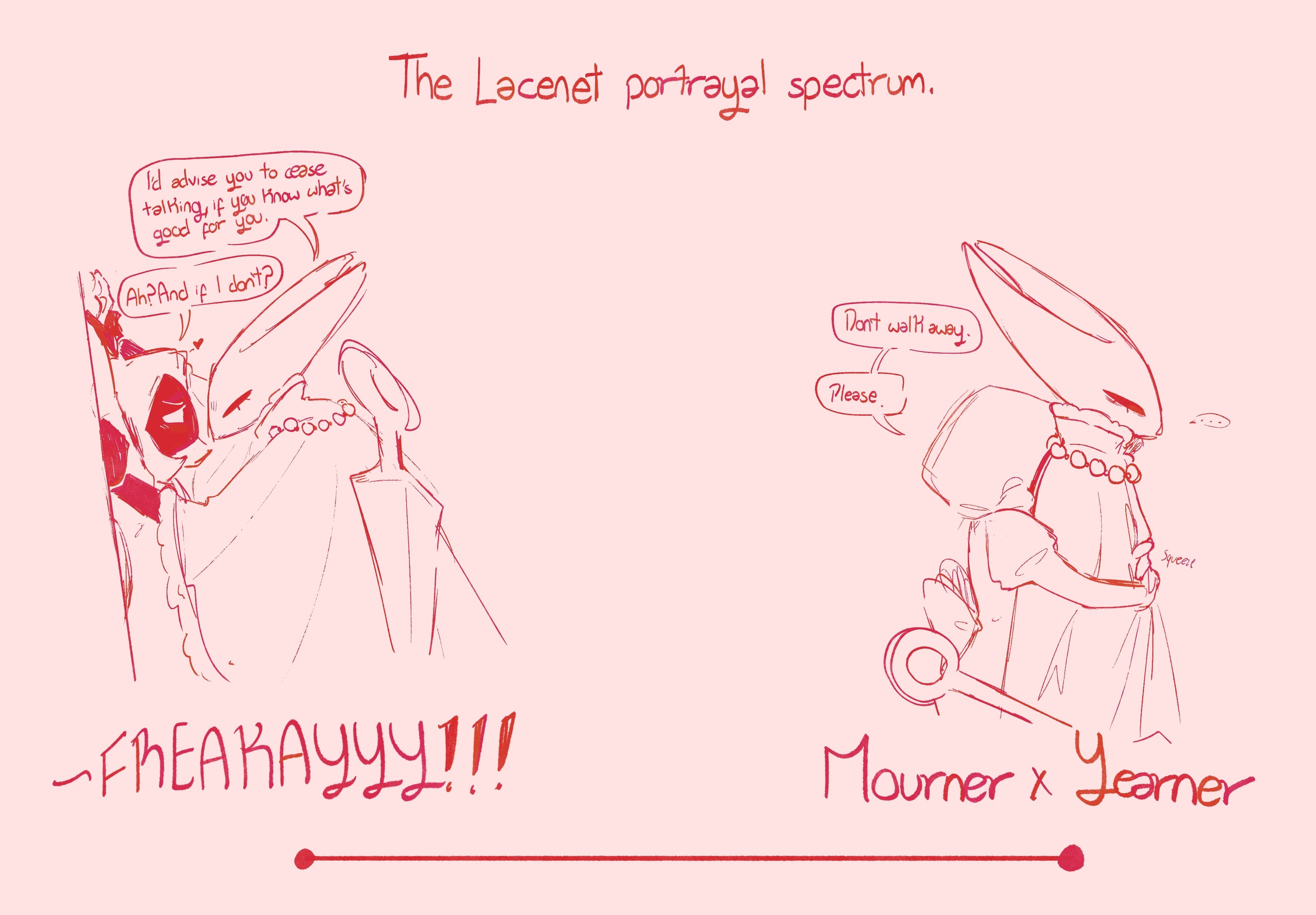 >>4501748It find it fascinating to be honest. Before Silksong's release people shipped these two fanatically even though we had nothing to work with. Then the game came out and they were far more antagonistic and less shippable than people thought and the whole "Lace is a child" thing got overblown by both the media illiterate and the homophobes. But after the dust has settled people really realized what Team Cherry has done. There is no way they would directly put some romantic arc into the game and they kept a lot of things vague intentionally... but the entire climax of Act 3 and what it implies basically is the ultimate set up for Lacenet fanfics. It's so obvious that it actually feels intentional. The lore has been so carefully set up that it is actually impossible to imagine a post-game story that can even remotely avoid Lacenet. This pairing demands to exist in some form in everything that tries to follow up the Sister of the Void ending.Add to that just how much trauma and character development is left unexplored, the fact that Hornet and Lace's dynamic is actually incredibly malleable and you got the greatest shipbait in history.
