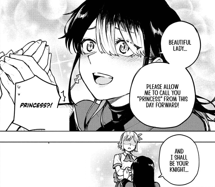 >>4528866Sadly >>4528868 ended up being right, in the latest chapter she is acting bashful towards the MC and telling him to become the knight to his princess, all in a very "I have a crush on you" wayAlso in the same chapter she notes now rather than seeing all women as princesses, she now sees them as normal She ends asking the girl she was smitten before to how to be cute as a princessEssentially it was all bait