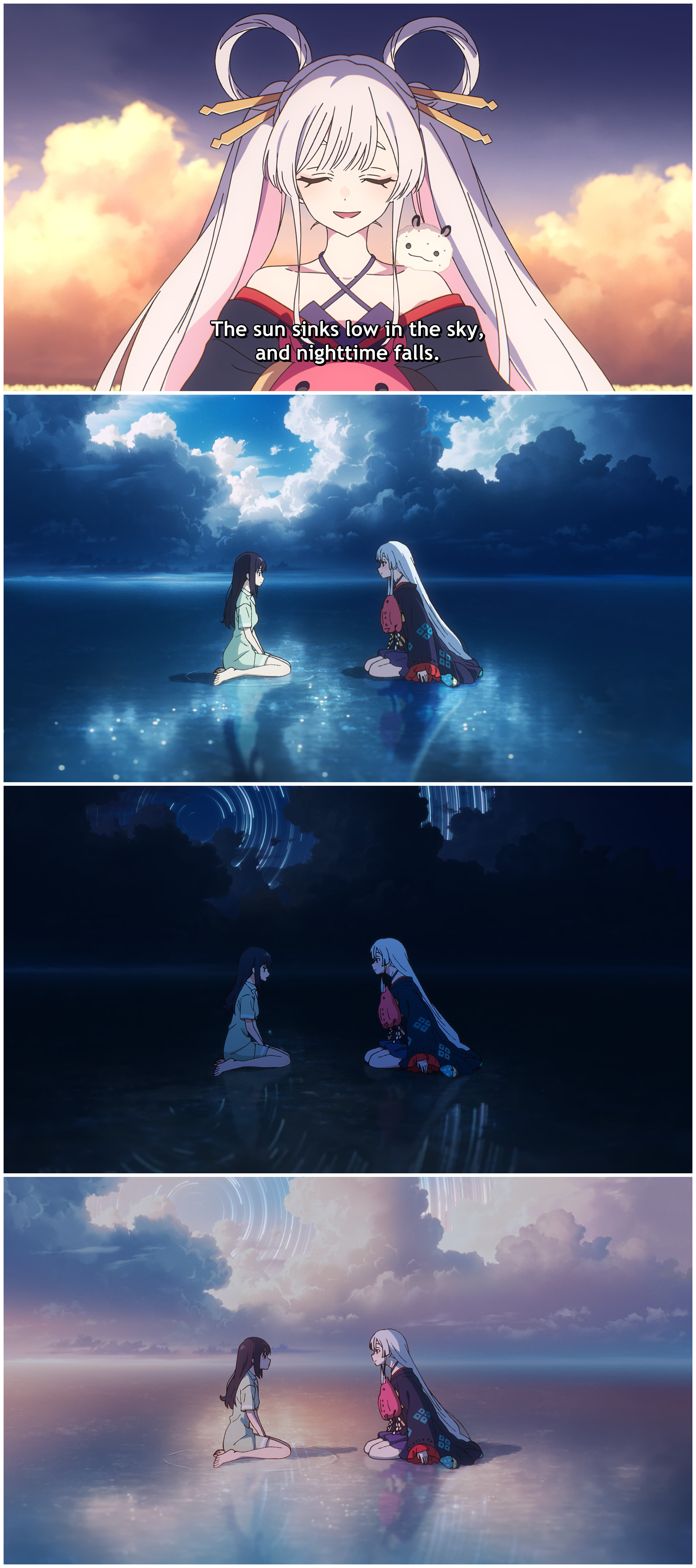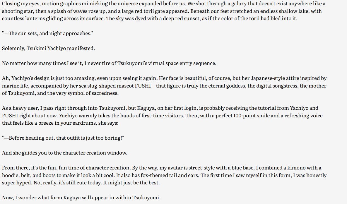 Also in regards to her personality, while I agree that some traces of the original Kaguya were still in Yachiyo, she was clearly heavily wheathered by 8000 years of solitude and loneliness without Iroha. It felt like her happy-go-lucky attitude was mostly an act for most of the movie. I can accept that being with Iroha again, in a body that feels more like herself is a way to rejuvinate her old personality, but in the first place she CHOSE this Yachiyo form to represent her in Tsukiyomi. I doubt it was just to close the loop, she clearly thought of herself as a different person. That's why when her younger "real" kaguya version said she wished she was more like Yachiyo to win over Iroha's love, Yachiyo replies that its Kaguya who Iroha really wants.