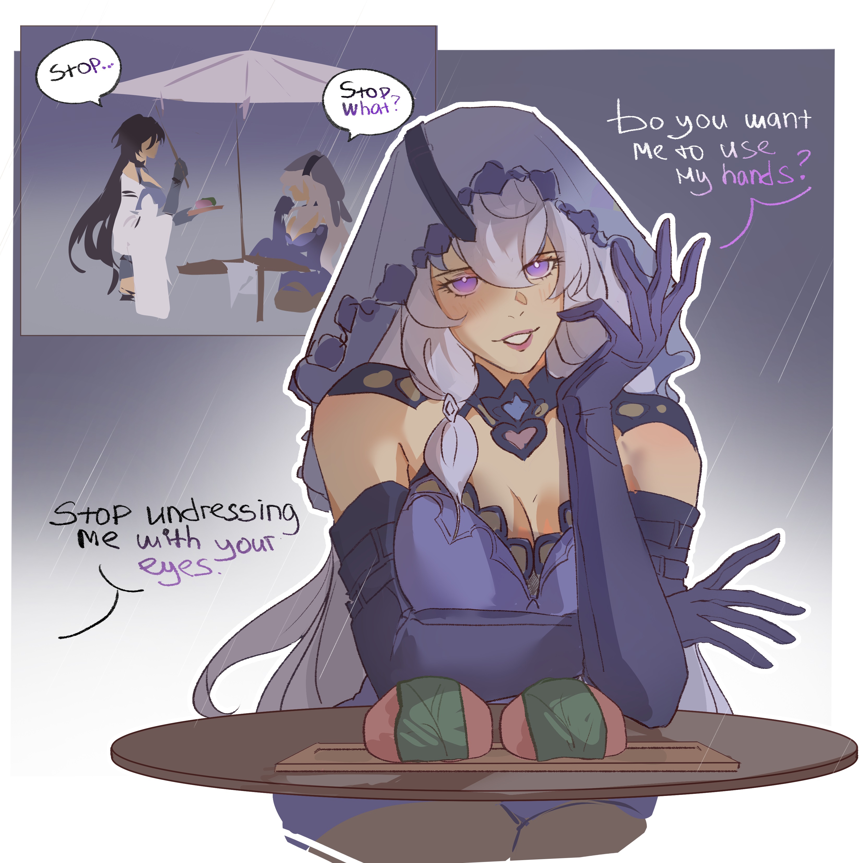 >>4535689>>4535690I saw here post that she was busy with HI3 and hasn't gotten to it yet. Hopefully she draws something for them because damn is Yixuan not holding back